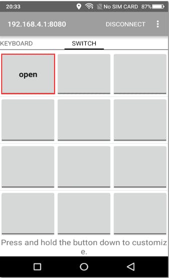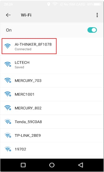 - Connect to the AP (Access Point) of ESP8266 WiFi module on an Android cell phone.
