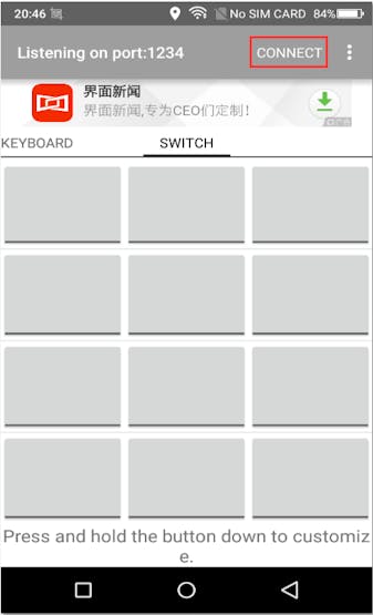- Install the “EasyTCP_20” app on the Android cell phone and open it; click “connect” and enter the IP address and port.
